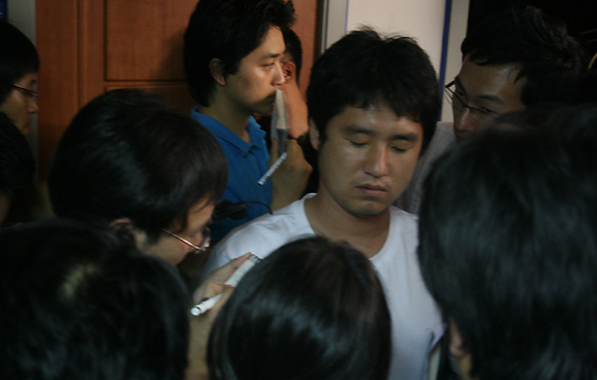 ▲ 가족대표자로 나온 이정란 씨 동생 이정훈씨가 협상시한 연장 소식 이후 가족들의 분위기를 기자들에게 브리핑하고 있다. |