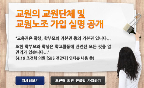 ▲ 조전혁 의원은 자신의 홈페이지에 팝업 창을 띄워 명단 공개 게시판으로 이어지도록 했다. |