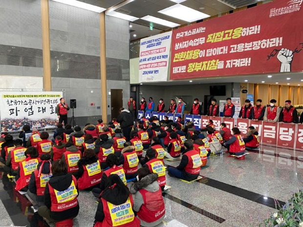 한국가스공사 비정규직노동자들은 1월 말에도 직접고용을 요구하며 파업에 돌입했으나 사측이 “최적의 정규직 전환 방안을 마련하도록 최선을 다하겠다”고 해 이틀 만에 파업을 종료했다. 이번 파업 중에는 채희봉 사장 면담을 요구하며 사장실에서 농성을 했고, 성영규 부사장이 한국가스공사와 비정규직의 정규직 전환에 관한 단독 협의를 약속해 3일 만에 사장실 농성을 해제하기도 했다. 사장실 농성을 했던 비정규직 노동자들은 한국가스공사 측이 계속 ‘외부인’ ‘불법점거’ 등의 발언을 해서 서럽고 속상했다고 했다.