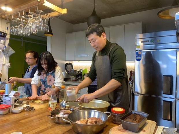 빵 굽는 냄새가 가득한 꿀잠 1층은 달고나부터 파운드 케이크, 생선요리 등 다양한 음식이 만들어지고 있다. 오늘의 주방장은 세종호텔 고진수 요리사다. 세종호텔노조 전 위원장이었던 그는 “단식에 들어간 아이들의 어머니를 생각하면 마음이 아프다”면서도 “아이들의 엄마가 이렇게 될 수밖에 없는 상황인지라 맛있는 음식을 만들어 아이들과 모인 사람들과 함께 식사했으면 해서 참여하게 됐다”고 전했다.