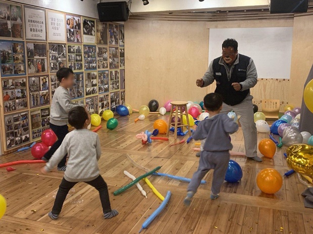 “보물찾기 하자”는 말에 아이들은 다시 지하 1층으로 뛰어간다. 분명 페이스페인팅을 받자고 1층에 있었지만 아이들은 가면만 쓰고 있을 뿐, 정작 페이스페인팅은 삼촌이 받았다. 조합원 삼촌은 ‘곰 아저씨’가 됐다. 세 명의 아이들은 다소 과격하게 곰 아저씨하게 뛰어들었다. 주변 사람들은 “그만, 그만”, “삼촌 다쳐”라면서도 웃음이 끊이질 않는다.