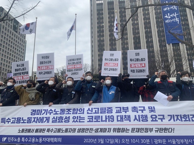 한편 이날 기자회견 참가자들은 특수고용노동자에게 실효성 있는 코로나19 대책 시행을 촉구하고 나섰다. 셔틀버스노조, 방과후강사노조, 대리운전노조 등 특수고용직 노조들은 이 자리에서 코로나19 확산으로 생계와 안전에 위협을 받고 있다고 전했다.