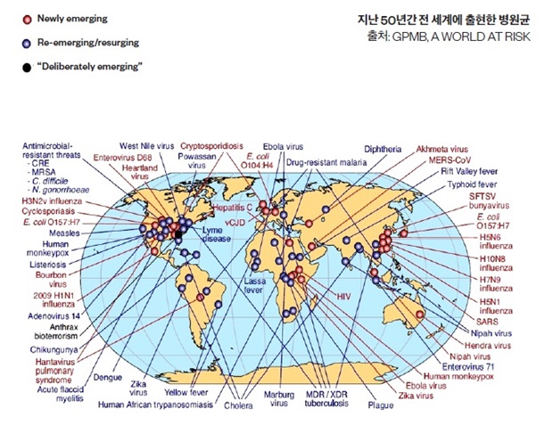 인류를 공포로 몰아넣을 무서운 경고는 계속되고 있다. WHO와 세계은행의 공동조직인 세계준비감시위원회(GPMB)는 지난해 9월 보고서를 통해 전 세계가 전염병 확대에 직면했다고 밝혔다. 유행성 질환은 더욱 자주 발견되며, 관리가 어렵고 충격이 상당한 병원균이 빠르게 증가하고 있다는 것이다. 또한 세계준비감시위원회는 100년 전 스페인 독감과 비슷한 전염병이 현 시기 발생한다면, 전 세계 인구 5000~8000만 명이 사망할 수 있다고 내다봤다. 1918년 발병한 스페인 독감으로 전 세계 인구 3분의 1이 병들었고, 전체의 2.8%에 달하는 5000만 명이 사망했다.5
