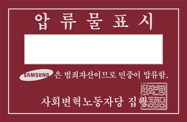 그 첫 발걸음으로 범죄재벌 삼성에 대한 민중가압류 운동을 온-오프라인 공간에서 시작합시다. 실정법상의 효력이 없는 상징적 운동일 수도 있지만, 다양한 실천을 통해 거대한 대중으로 나아가고자 합니다. 역사변화는 법정이 아닌 광장에서 이루어져 왔습니다. 수많은 민중들의 염원이 모이고 그 염원이 행동으로 표출될 때 역사는 변화돼 왔습니다. 범죄재벌 삼성을 사회화 하기 위한 노동자민중의 염원을 민중가압류운동으로 모아나가고자 합니다.
