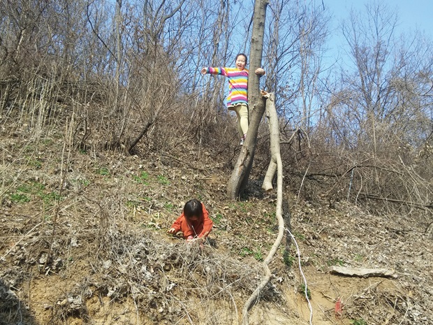코로나19 때문에 봄도 느릿느릿 오는 것 같은 어느 날. 숨어 있는 밭을 모두 찾겠다는 결심으로 작은 언덕 위 밭을 오릅니다. 일 년만 돌아보지 않아도 밭에는 나무가 자랍니다. 다가오지 말라는 듯 뾰족뾰족 가시를 두른 아카시아 나무가 일 년 만에 유하 팔뚝만큼 자랐습니다. 유하 아빠는 잡목들을 낫으로 툭툭 잘라내다 “유하야 이리와 봐”라며 유하를 부릅니다. 탐험을 한다며 이리저리 끈을 묶고 나무를 오르락내리락 하던 유하는 “왜? 무슨 일이야?”하고 달려옵니다.