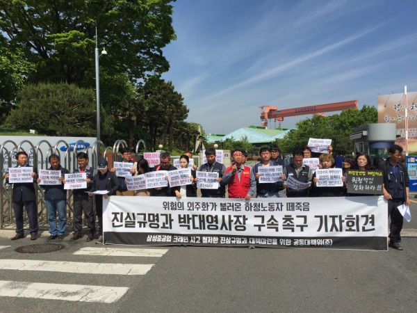 앞서 지난 2017년 5월 1일, 삼성중공업 거제조선소에서 800톤급 골리앗 크레인과 32톤급 지브형 크레인이 충돌하는 중대재해가 발생했다. 이 사고로 6명의 하청노동자가 사망하고 25명이 다쳤으며, 150여 명의 노동자들이 현재까지 신체적, 정신적 고통을 호소하고 있다. 하지만 법원은 삼성중공업의 산업안전보건법 상 안전조치의무와 산업재해예방조치의무 위반에 대해 모두 무죄를 선고했다. 또한 현재까지 피해를 호소하고 있는 150여 명의 노동자 중 산재로 공식 인정받은 노동자는 14명뿐이다.