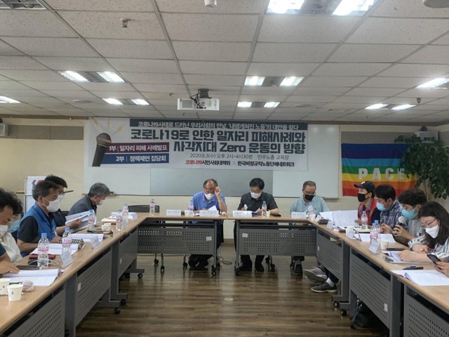 코로나19사회경제위기대응시민사회대책위와 한국비정규직노동단체네트워크는 3일 오후 2시 민주노총 15층 교육장에서 ‘코로나19로 인한 일자리 피해사례와 사각지대 제로-ZERO 운동의 방향’ 집담회를 열었다. 이들은 “(특수고용노동자, 프리랜서 등) ‘내팽개쳐진 노동’은 조직화되지 않아 집합적 목소리조차 형성되고 있지 못해 정책생산 참여의 통로도 없다”며 “현장 노동자의 목소리를 사회화하고 ‘사각지대 제로운동’의 방향을 모색하며 포스트코로나시대의 노동권이 보편적으로 보장되는 새로운 노동체제의 확립을 위한 노동·시민운동의 출발점으로 삼고자 한다”고 취지를 밝혔다.