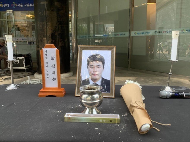 끝으로 기자회견 참가자들은 서울고용노동청 앞에 설치한 고 김재순 노동자 분향소에서 헌화를 진행했다. 한편 전장연은 ‘고김재순사회적타살장애·노동·시민대책위원회(고김재순서울대책위)’를 구성해 7개 요구안이 관철될 때까지 투쟁을 이어갈 계획이다. 이들은 △고인의 사망에 대한 노동부 장관 사과 △중대재해기업처벌법 제정 △장애인고용촉진및직업재활법 전면개정 △장애인고용사업장 장애유형 장애인 편의제공 및 안전실태 전면조사 실시 등을 요구하고 있다.
