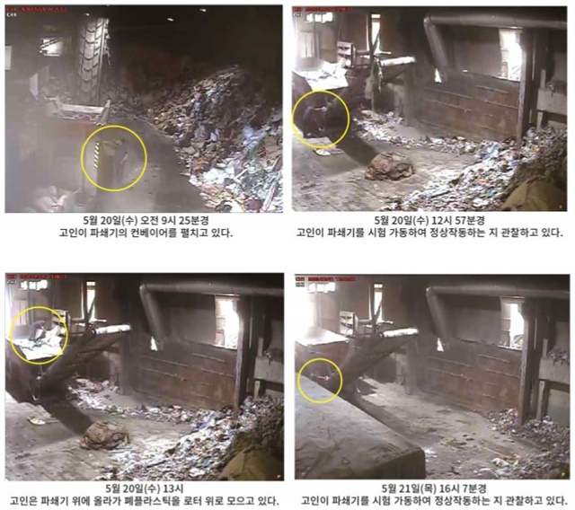 아울러 이들은 고인이 사망 당시 ‘혼자’ 작업을 했다는 점을 지적했다. ‘산업안전보건기준에관한규칙’에 의하면 굴착기로 폐합성수지를 수지 파쇄기 등에 넣는 작업, 굴착기와 지게차, 화물자동차를 사용하는 하역 작업, 파쇄기 정비 작업 등은 2인 1조 작업을 수행하도록 돼 있기 때문이다. 진상조사단은 사고 당시 고인과 짝을 이룬 사람이 있었다면, 고인이 떨어진 직후 작동을 중단시킬 수 있었을 것으로 보고 있다.