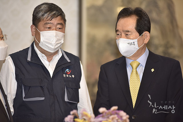 총리실은 “협약식은 없고 만남만 있을 예정”이라며 “민주노총 불참으로 (협약식이) 취소됐다”고 전했다.