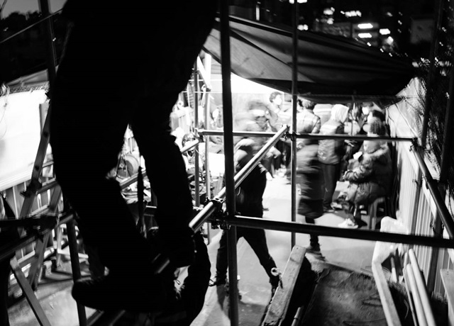 지난 10월 29일. 아직 해가 뜨기 전인 새벽 6시 30분. 노량진 신시장 건물 위는 칠흑 같은 어둠에 휩싸여 있었다. 농성 중이던 누군가가 멀리 공사장 컨테이너를 가리키며 소리를 질렀다. 누군가가 오고 있다는 것이었다. 그곳에는 공사장 인부로 보이는 사람들이 서성이고 있었다. 그저 새벽 공사를 준비하는 사람으로 보였다. 농성장 바로 밑에 있는 커다란 굴착기에 불이 켜지고 그것이 서서히 움직이기 시작했다. 그때까지만 해도 공사를 준비하는 것이겠거니 했다. 같은 시간, 노란 형광조끼를 입은 경찰들도 눈에 띄었다. 그제야 상황이 심상치 않다는 걸 알았다. 수협 직원으로 보이는 하얀색 헬멧을 쓴 사람들이 경찰과 잠시 무슨 말을 나눴다. 그러더니 농성장 쪽으로 기다란 호스 같은 것을 끌고 다가왔다. 농성장 바로 아래에서 호스를 통해 물이 뿜어져 나오기 시작했다. 사전 실험을 마친 수협 직원들과 용역으로 보이는 사람들이 공사 중인 계단 위로 올라왔다.