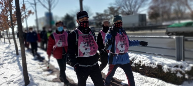 ▲ 2월 4일 희망뚜벅이에 참가해 걷고 있는 코레일네트웍스 해고노동자들 [출처: 연정] |