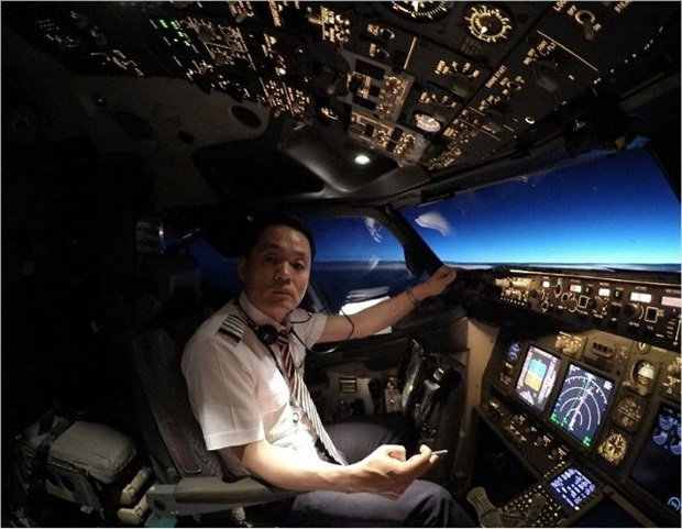 ▲ 근무할 당시 비행기 조종실 안에서 박이삼 지부장. [출처: 이스타항공지부 박이삼 지부장] |