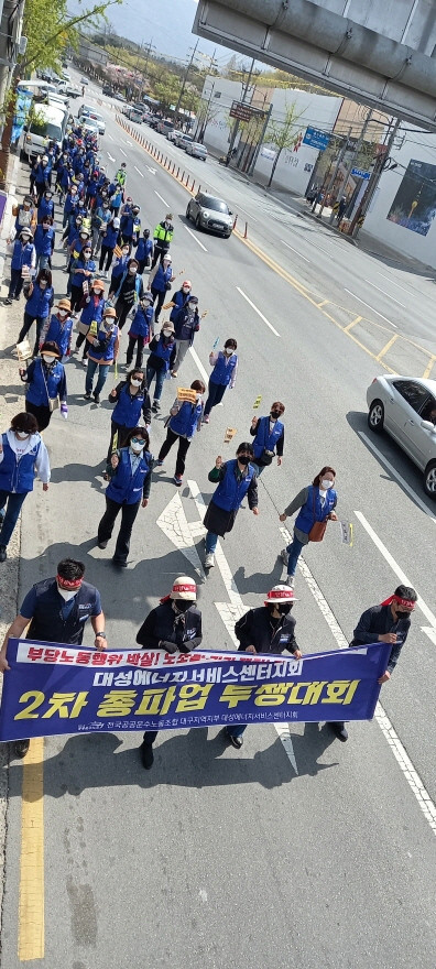 ▲ 4월 2일, 이월드에서 대성에너지까지 행진하고 있는 대성에너지 검침·점검 노동자들 [출처: 연정] |