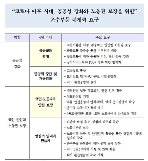 ▲ 공공운수노조 운수노동자 대정부 요구안 [출처: 공공운수노조] |