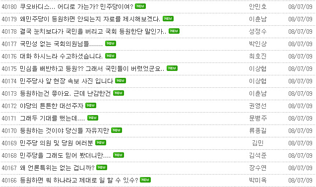 ▲ 9일 민주당 홈페이지에 올라온 등원 항의 글. |