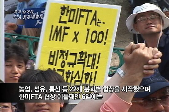 이꽃맘/ 한미 FTA 1차 협상이 진행되고 있는 동안 우리나라에서 원정 시위대가 미국 워싱턴 현지로 갔었는데요. 어떤 활동을 벌였는지 들어보았습니다. 영상 보시겠습니다.