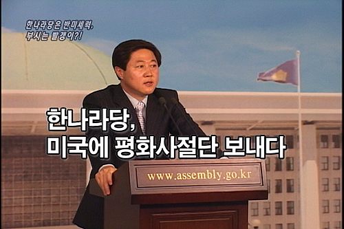 홍석만/국회 영상보셨는데요, 한나라당이 반미로 돌아섰다는 점도 웃긴 일이지만 가장 재미있는 것은 럼스펠드 미국방장관과 부시 미대통령이 빨갱이인 것으로 드러나 화제를 모으고 있습니다.