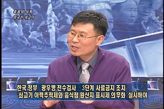 박상표/ 최근 한 언론을 통해서 광우병과 인간광우병의 진단업무에 종사했던 몇몇 교수들이 갑자기 폐사하거나 주저앉는 증상을 보이는 소들을 광우병 검사 없이 묻어 버렸다거나 인간광우병으로 의심되는 환자들을 유족들이 부검을 반대하여 확정진단을 내리지 못했다는 증언들을 하기도 했습니다. 또한 열린우리당 김선미 의원이 문제제기한 것처럼 광우병으로 수입이 금지된 기간동안에 미국이나 캐나다산 쇠고기가 국내에 반입되어 유통되기도 했습니다. 소머리나 뼛가루도 수입되어 라면 스프나 조미료의 원료로 사용된 것이 아닌가 하는 의혹도 제기되었습니다. 그 뿐만 아니라 우리나라는 유럽이나 일본, 미국처럼 광우병 위험물질에 대해 식용금지 조치를 취하고 있지도 않습니다. 그러므로 한국도 결코 광우병 안전지대라고 볼 수 없다고 생각합니다.