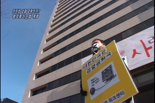 영상1. 정보통신부 앞 1인 시위/ 정통부 인터뷰(법안 취지)
