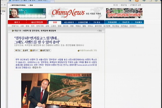 또한 2007년 대선을 앞둔 민감한 시점, 오마이뉴스의 이번 기사가 형평성과 진정성을 얻기 위해서는 이명박 전 시장 뿐만 아니라 또다른 대선 후보로 거론되고 있는 박근혜 대표와 정동영, 김근태, 한명숙 등 타 후보들에 대한 검증도 진행되어야 합니다. 이 전 시장이 강력한 대선 후보이긴 하나, 이를 견제하겠다는 정치적 의도가 아니라면 다른 후보들의 철학과 이념에 대한 검증도 함께 진행되어야 할 것입니다.