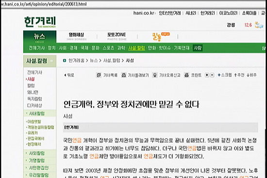 연금법 무더기 부결, 한겨레 ‘개혁이 뭐길래!’