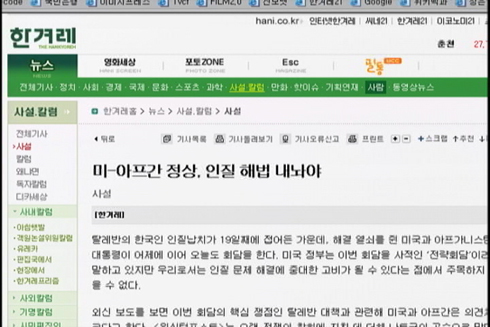 하주영/ 6자정상회담에서 미국에 대한 개혁언론의 문제의식이 없다고 지적한 바 있죠. 이번 피랍사태에서의 미국역할론에서 개혁언론들 어떻게 대응하고 있는지 자못 궁금해집니다. 어떤가요?