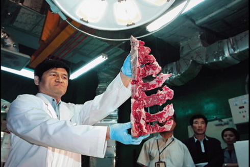 김완 / 말도 많고 탈도 많던 미국산 쇠고기 판매가 재개되었는데요, 얼마지나지 않아 뼈조각이 발견되더니 이제는 아예 등뼈가 실하게 통째로 발견되었습니다.