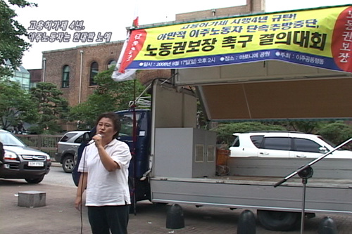 하주영/ 세상보기 시간입니다. 우리 사회 소외계층의 최전방에 선 이들, 바로 이주노동자들이죠. 이주노동자의 처우 개선을 위해 고용허가 제가 시행된 지 4년이 지났지만, 이주노동자는 여전히 열악한 노동 환경과 단속추방 위협에 시달리고 있습니다. 지난 17일 고용허가제와 단속추방을 규탄하는 이주노동자들의 집회가 열렸는데요,