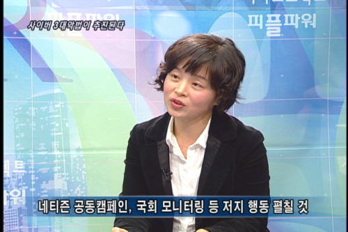 이지은/ 현재 사회 제분야에 온갖 악법들이 쏟아져 나오고 있습니다. 시민사회단체들이 제각각의 영역에서 나름대로 대응도 하고 있지만, 사이버상 표현의 자유를 위축하고 국민을 감시 통제하려는 법에 대해 함께 공동대응하면 보다 더 집중할 수 있고, 서로 또 더 좋은 아이디어도 낼 수 있다고 봅니다. 각 단위에서도 이 법들의 불합리성과 문제를 적극 지적하고 반대하고 또 함께 할 부분은 함께 하는 것으로 생각하고 있습니다.