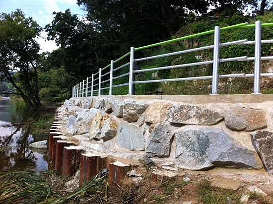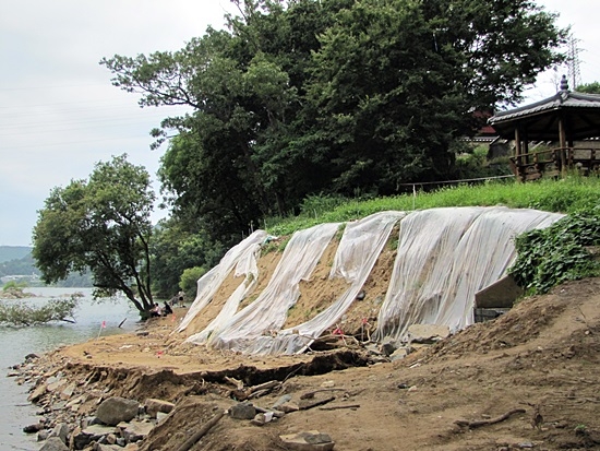 ▲ 측방침식으로 동락서원이 붕괴되는 것을 막고자 시트파일까지 박아 복구공사를 해뒀다 |