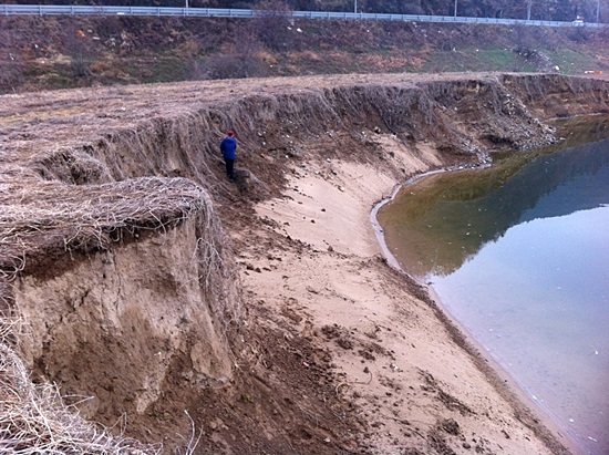 ▲ 측방침식을 방지하기 위해서 22억을 들여 저수호안 공사를 벌이고 있다 |