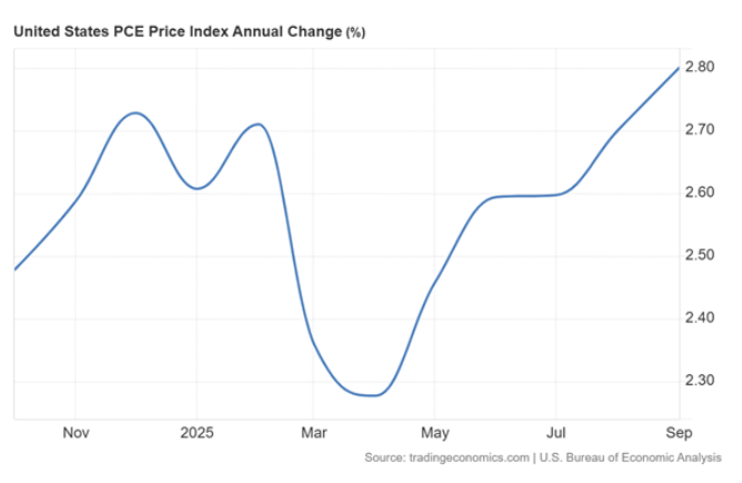 연방준비제도(Federal Reserve)가 금리 정책을 결정할 때 참고하는 개인소비지출(PCE) 물가지수는 4월 2.3%에서 9월 2.8%로 상승했다. 트럼프가 소위 ‘해방의 날’이라 불리는 날에 대규모 수입 관세를 발표한 이후 나타난 결과다. 그러나 이 ‘해방’은 물가에만 해당했다.