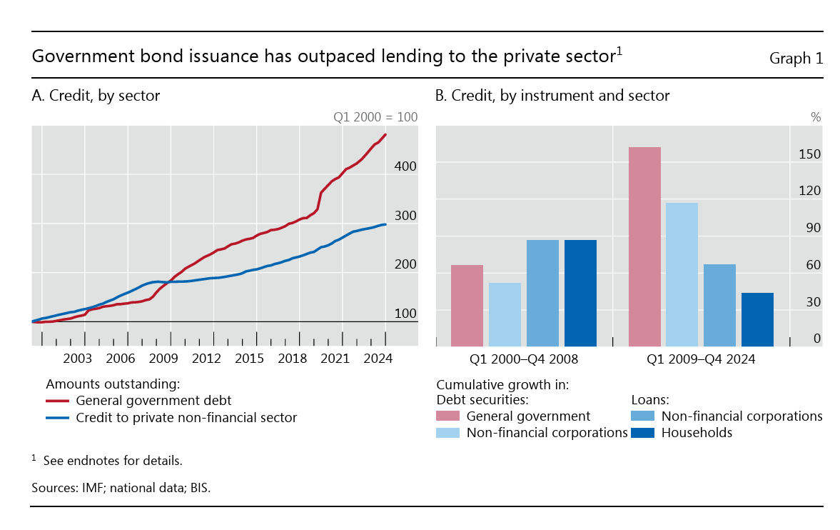 2008년의 글로벌 금융위기(GFC)는 오늘날의 금융 시스템 상태를 규정하는 두 가지 구조적 변화를 촉발한 분기점이었다. 첫째, 금융 중개 기능의 초점이 민간 부문 차입자 대출에서 정부에 대한 청구권, 특히 국채 형태로 옮겨갔다. 둘째, 비은행 금융기관(NBFI)의 역할이 커졌다. GFC가 주로 규제된 은행이 주인공이었던 은행 위기였던 반면, GFC 이후의 금융 시스템에서는 국채에 투자하는 포트폴리오 매니저들이 중심 무대에 섰다.