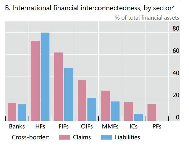 비은행 금융기관은 국경을 넘는 대규모 투자에도 참여한다. 이 과정에서 그들은 다시 한 번 높은 레버리지와 본질적으로 불안정한 자금조달 구조에 얽히게 된다. 이 경우 수치는 정말 압도적이다.