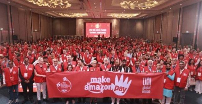 "아마존의 끝없는 이윤 추구는 노동자환경그리고 민주주의에 대가를 치르게 하고 있다"고 UNI 글로벌 노조(UNI Global Union) 사무총장 크리스티 호프만(Christy Hoffman)이 말했다.