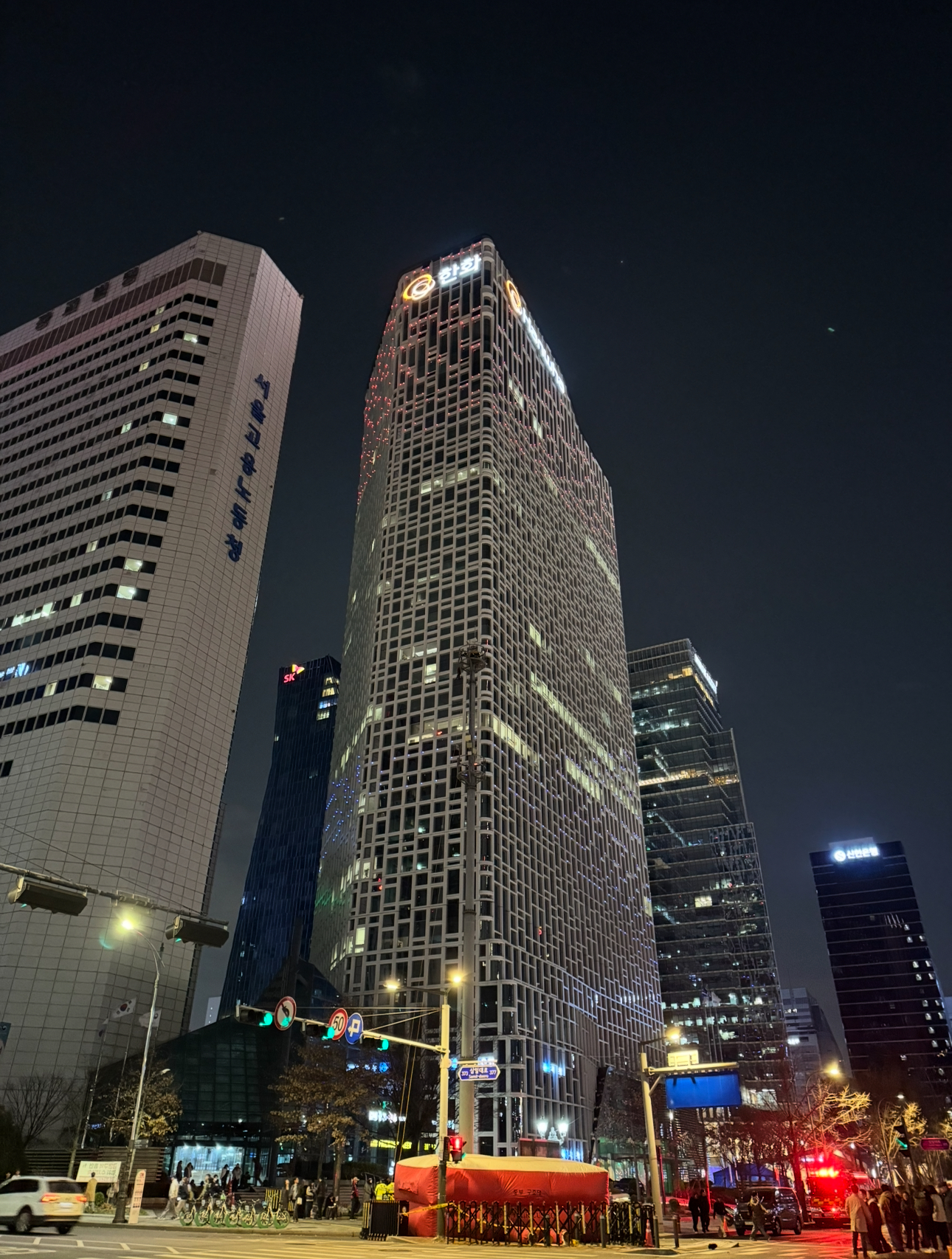 15일 저녁, 서울 청계천로 한화빌딩 앞을 찾았다. 30m 높이 철탑에 사람이 있다. 청계천 삼일교에서 고개를 들어 한화그룹 본사로 눈길이 향하면, CCTV 철탑 꼭대기, 다리도 펼 수 없는 좁은 공간에 웅크려 앉아 있는 이가 어스름이 보였다.
