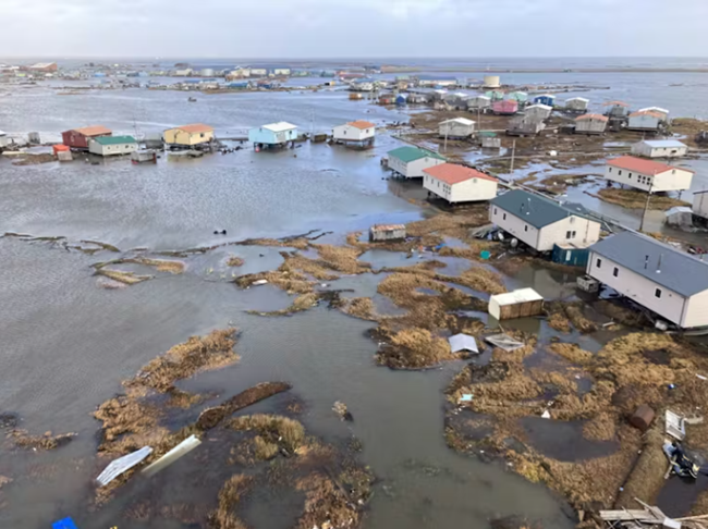 2025년 10월 12일 촬영된 킵눅 마을은 전 태풍 할롱으로 초토화되었다이 폭풍으로 알래스카 서부 전역에서 최소 1,500명이 삶의 터전을 잃었다출처: 알래스카 주방위군