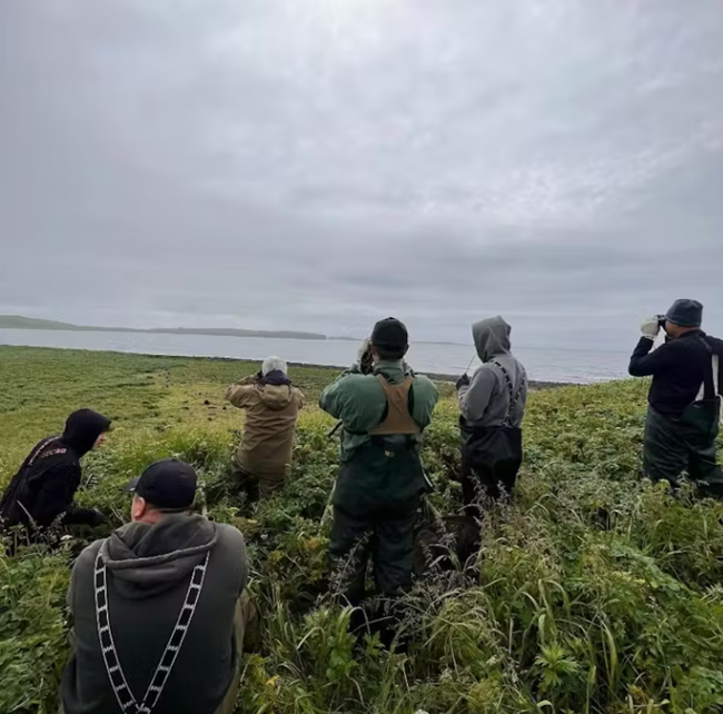 원주민 센티널 네트워크의 관측자들은 미국 해양대기청 과학자들과 함께 세인트폴섬에서 북방물개 개체 수와 건강 상태를 모니터링하고 있다출처해나-마리 래드, CC BY