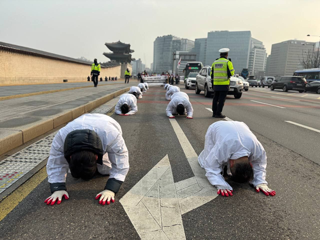 청와대 미화·조경·보안·안내 노동자들은 29일 오전 서울 광화문광장에서 청와대까지 삼보일배를 진행하며 대통령실에 고용보장 대책 마련을 촉구했다. 이들은 대통령의 “청와대 복귀로 봉황기가 다시 걸렸지만, 정작 현장에서 일해온 노동자들의 고용 문제는 아무런 대책 없이 방치되고 있다”고 밝혔다.