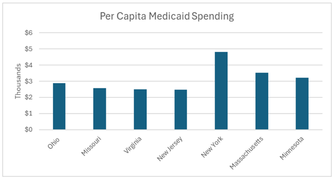 미네소타는 오하이오나 미주리 같은 공화당 주들보다는 다소 더 많이 지출하지만매사추세츠나 뉴욕 같은 민주당 주들보다는 훨씬 적게 지출한다상대적인 의료비 수준과 인구의 연령 분포를 함께 분석하지 않고서는 지출 규모나 사기의 잠재적 영향을 단정적으로 말하기 어렵다그러나 단순한 총액 수치만으로는 광범위한 사기가 있었다는 주장을 뚜렷하게 뒷받침하지 못한다.