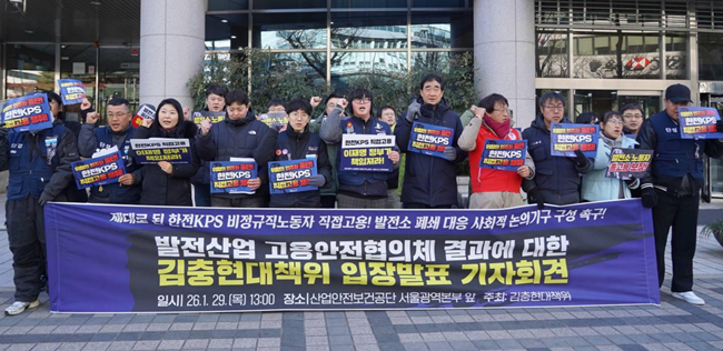 현장 노동자의 증언도 이어졌다. 주영주 한전KPS비정규직지회 서인천분회 조합원은 하청업체 변경 과정에서 반복된 인원 감축 통보와 임금체불, 계약 해지를 겪었다고 밝혔다. 주 조합원은 “설계인원을 이유로 감축을 통보받았고, 약속된 추가 임금도 지급되지 않았다”며 “계약 만료를 빌미로 전원 해고까지 당했다”고 말했다. 그는 “복직했지만 체불임금과 직접노무비 착복 문제는 여전히 해결되지 않고 있다”고 밝혔다.