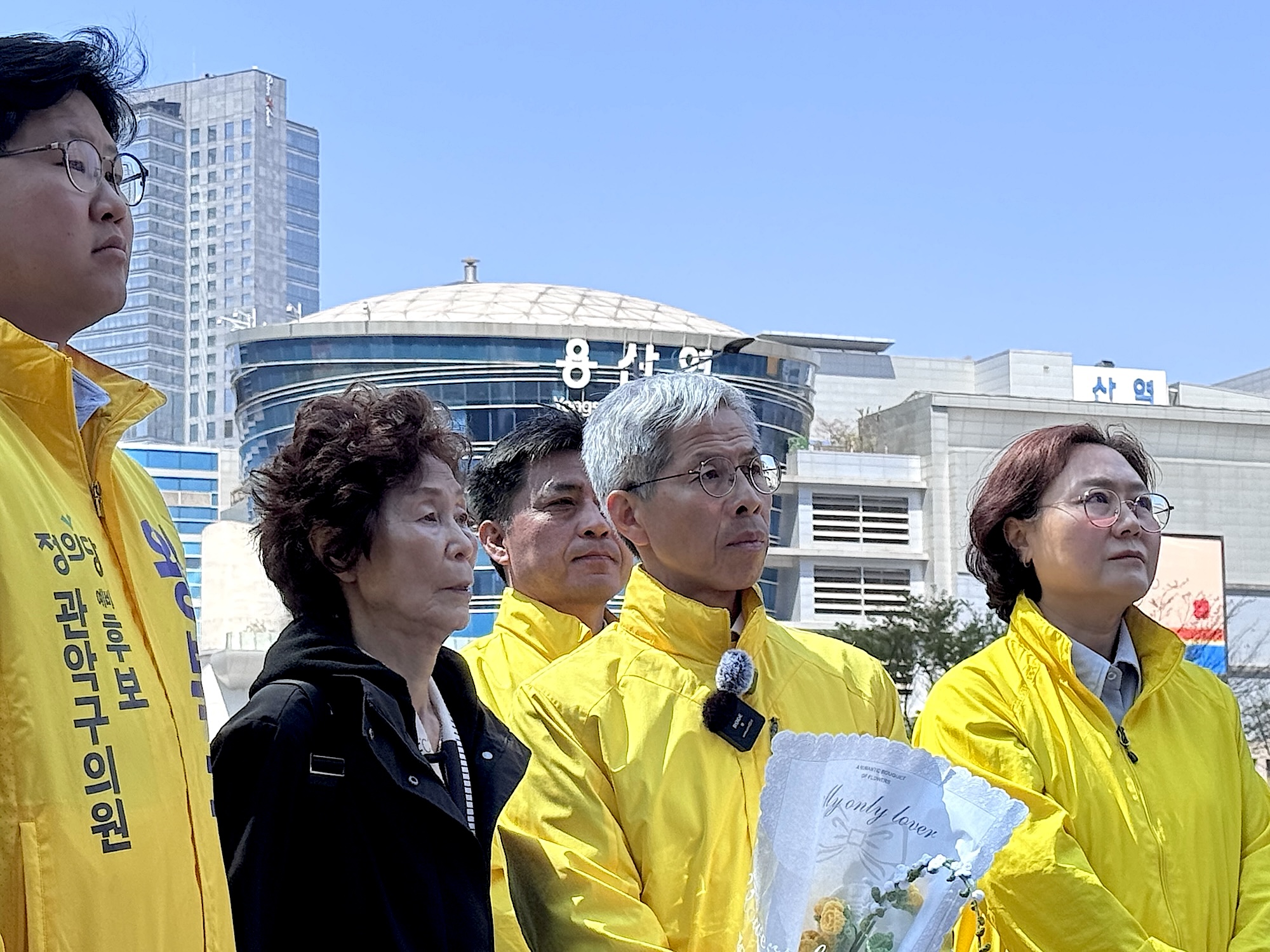 이날 권영국 대표는 출마 선언 기자회견을 마치고 인근의 용산 참사 현장을 찾았다. 권 대표의 곁에는 참사 유가족인 전재숙 씨가 자리를 지켰다. 그는 당시 오세훈 시장이 힘을 쏟았던 재개발 정책으로 벌어진 참사 과정에서 “우리의 목소리를 들어준 사람은 아무도 없었는데, 권영국 후보는 추우나 더우나 우리와 함께였다”면서 지금도 “한강버스 등 부자들을 위한 개발 사업에는 수많은 돈을 퍼붓고, 우리같은 가난한 서민들은 죽이는 살림만 하고 있는 오세훈 시장”의 부정의한 시정을 권영국 후보가 바꾸어 내기를 바라고 응원한다는 마음을 전했다.
