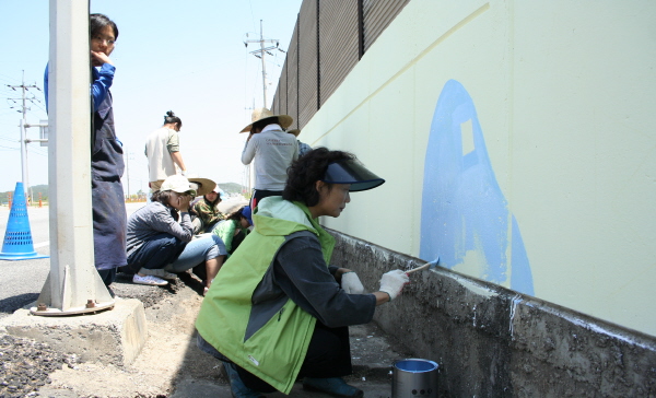 모두들 기다란 벽에 그려진 자연의 풍광을 담은 벽화를 보며 뿌듯하기만 하다. 이 벽화는 학교와 차도를 가로지르는 벽이다. 그래서 벽화를 보다가 ...