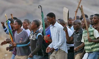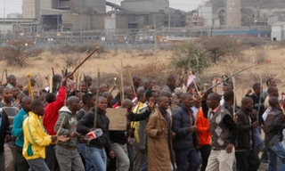 남아프리카공화국 파업노동자들이 사측과 친기업 노조가 맺은 “우선 일자리 복귀” 협상에 반대하며 마리카나 광산 앞에서 파업시위를 재개했다. 파업시...