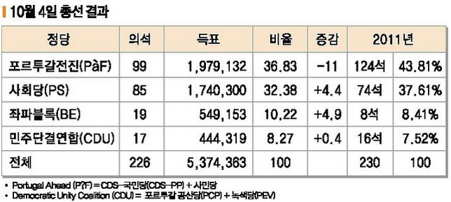 10월 4일 열린 포르투갈의 총선은 그리스의 상황과 달리 미묘한 결과를 낳았다. 비록 트로이카에 굴복한 우파 정권이 대중의 심판을 받아 다수를 ...