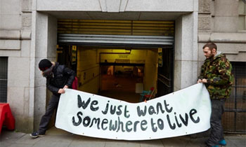 영국 홈리스활동가들, 구 맨체스터 주식거래소 점거[1]