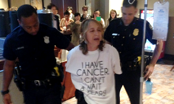 헥셔는 “나는 암 투병 중이다. 나는 몇 년을 기다릴 수 없다”는 문구가 쓰인 티셔츠를 입고 TPP 반대시위를 진행했다. 그는 “나의 링거를 잘...