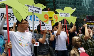 “일부 정치가의 소수 의견으로 집단적 자위권 행사 허용 문제를 결정하다니 용서할 수 없다. 국민 대다수는 반대한다. 정부가 국민의 소리를 들으려...
