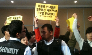 “밀실야합” TPP 공청회 농민 등 기습 항의...아수라장